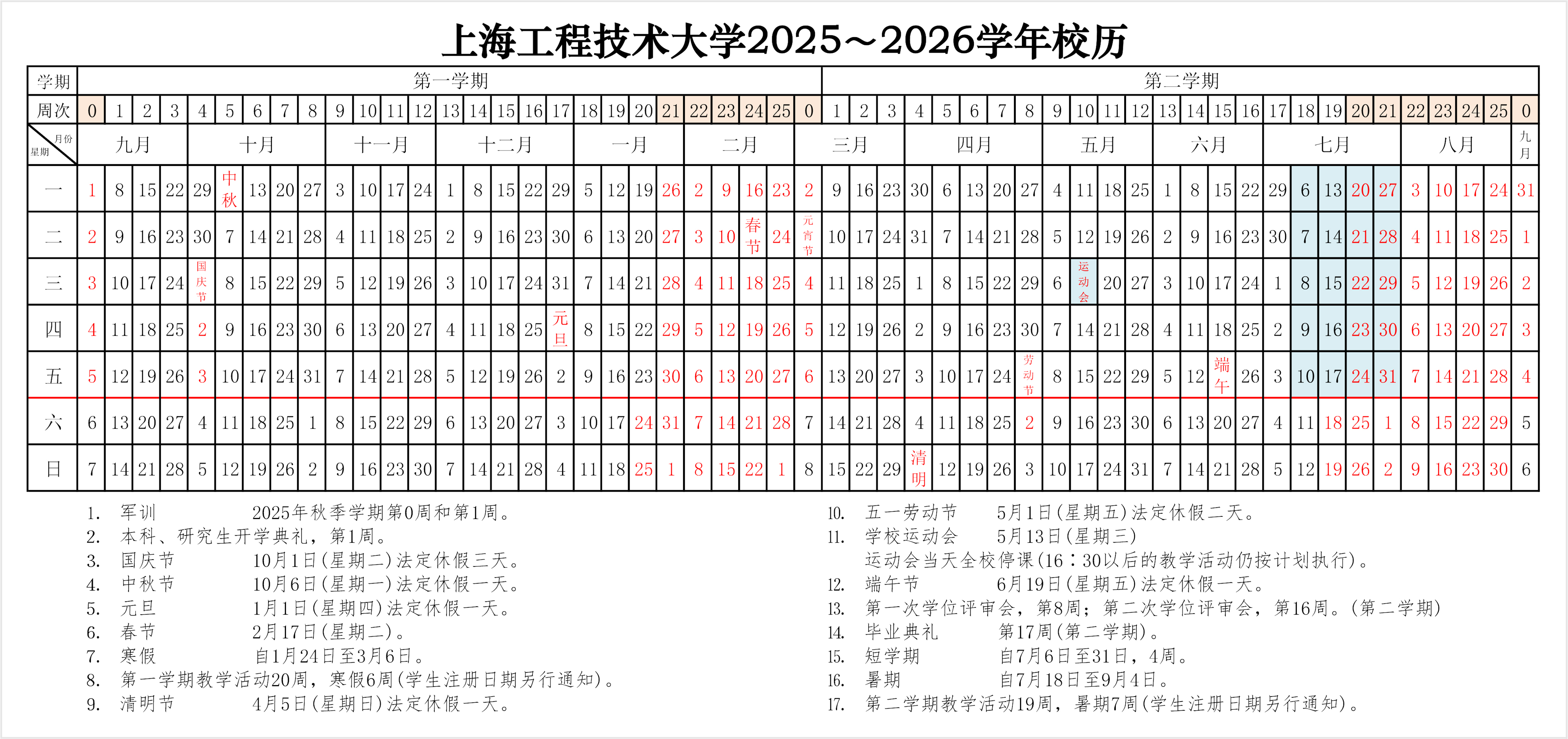 2025-2026学年校历
